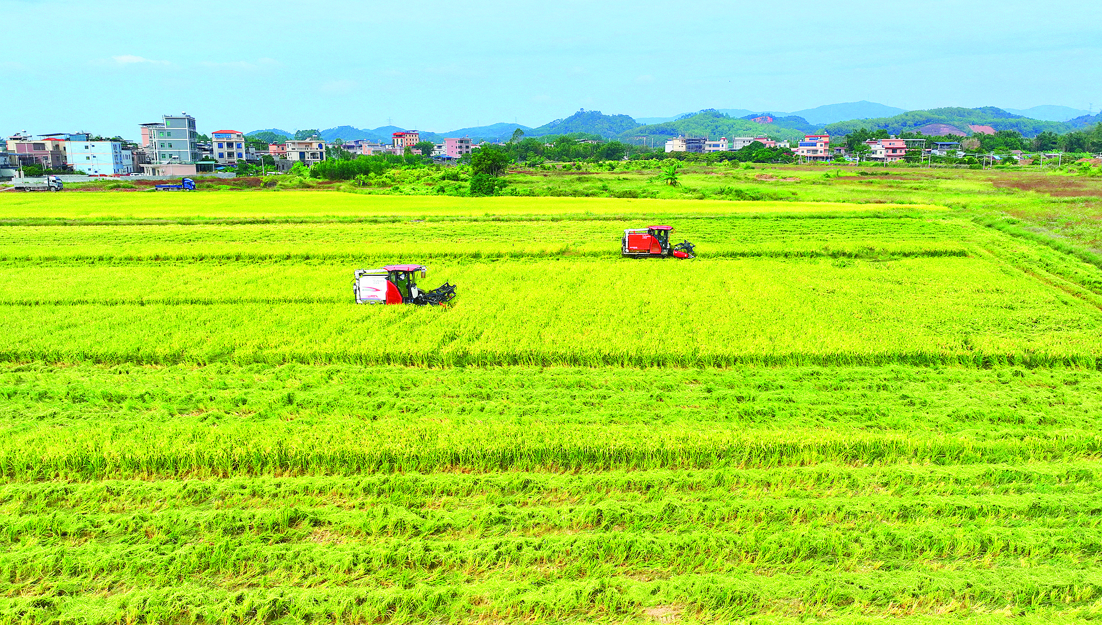 冬日暖陽下,仲愷高新區(qū)潼湖鎮(zhèn)新光村連片的稻田里,收割機轟鳴作響,金黃的稻穗被整齊地卷入機艙,轉(zhuǎn)眼變成顆顆飽滿的稻谷。