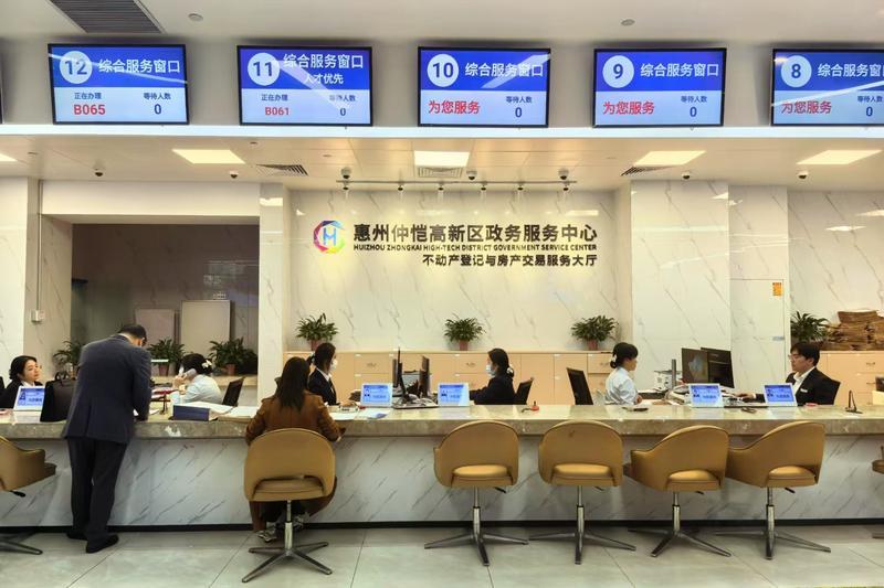 仲愷高新區(qū)政務服務中心不動產(chǎn)登記與房產(chǎn)交易服務大廳。