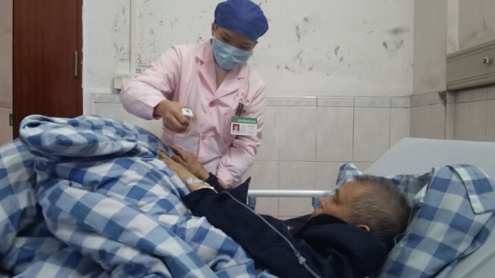 歐陽懿珍給患者測(cè)量血壓、血氧。