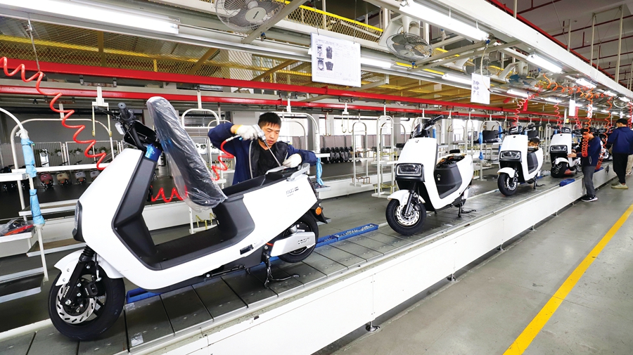 在龍華小刀電動(dòng)車生產(chǎn)基地生產(chǎn)車間里,工人正在趕訂單。惠州日?qǐng)?bào)記者鐘暢新 攝