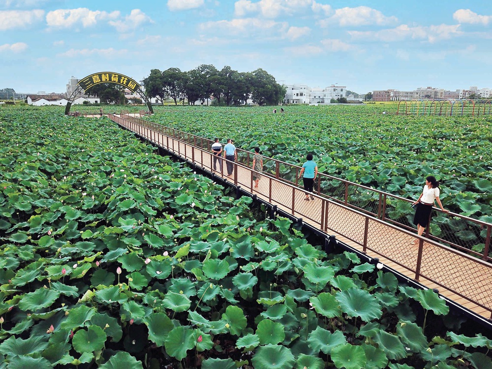 石壩鎮(zhèn)三嘉村發(fā)展荷花種植業(yè)帶動(dòng)鄉(xiāng)村旅游。