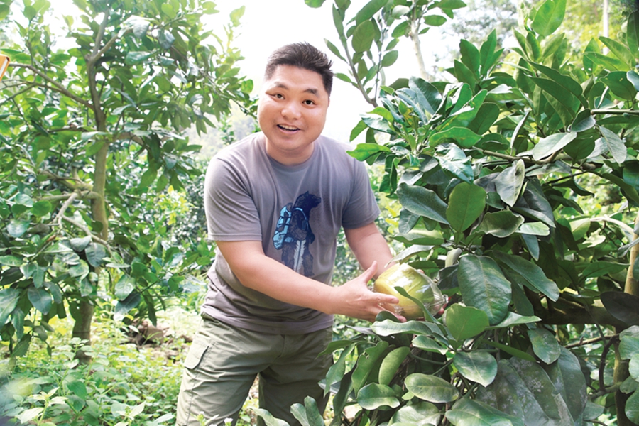 楊志豐拓展產(chǎn)業(yè)種植沙田柚。惠州日?qǐng)?bào)記者鐘暢新 攝