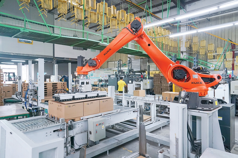 如今,該公司已擁有200多臺(tái)自動(dòng)機(jī)械臂,實(shí)現(xiàn)了多道工序的自動(dòng)化作業(yè)。“以這條生產(chǎn)線為例,它生產(chǎn)的小推車除了零件分裝外,在取樣、焊接、裁剪、組裝、沖壓等環(huán)節(jié)都已經(jīng)實(shí)現(xiàn)了機(jī)械臂無(wú)人化生產(chǎn)。”羅崇光說(shuō),該公司一直在推進(jìn)自動(dòng)化改造,“到2025年,我們將在生產(chǎn)線部署超500臺(tái)機(jī)械臂。”