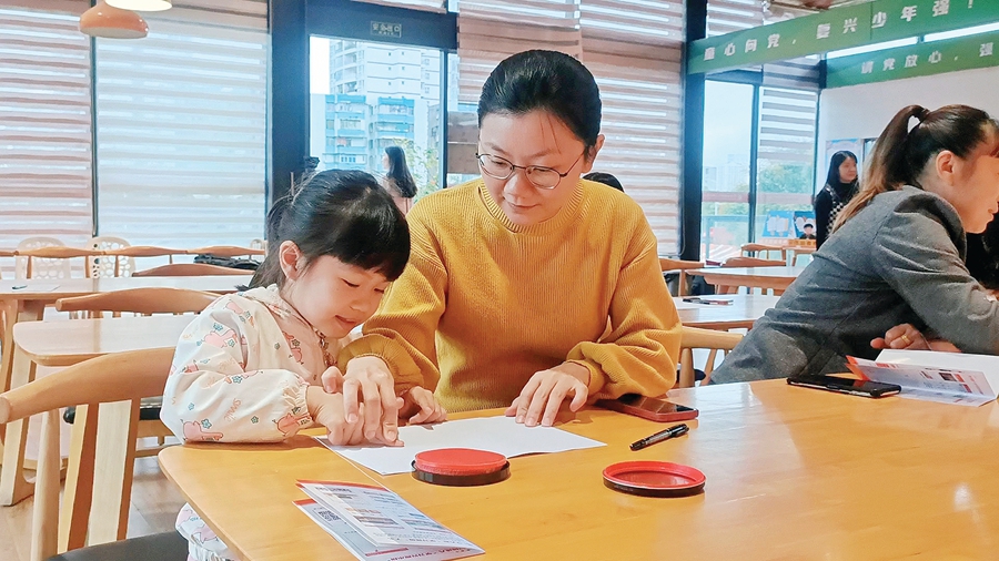 活動(dòng)中,孩子和家長(zhǎng)一起繪畫大熊貓。