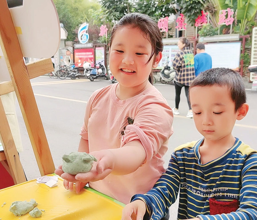 攤位的另一邊也是一片其樂(lè)融融。小朋友們正在志愿者、家長(zhǎng)的指導(dǎo)下學(xué)做艾粄。捏面團(tuán)、放餡料……不一會(huì)兒,一個(gè)個(gè)可愛(ài)的小艾粄成型了。市民鄧女士一家三口前來(lái)參加活動(dòng),她告訴記者,希望孩子在娛樂(lè)中了解客家人的傳統(tǒng)習(xí)俗,傳承傳統(tǒng)文化。