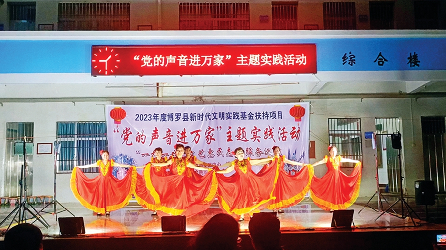 “一村一戲”文藝惠民志愿服務(wù)巡演蓬勃開(kāi)展的背后是近年來(lái)該縣新時(shí)代文明實(shí)踐生根發(fā)芽、開(kāi)花結(jié)果的現(xiàn)實(shí)寫(xiě)照。據(jù)了解,博羅縣是全國(guó)首批建設(shè)新時(shí)代文明實(shí)踐中心試點(diǎn),截至目前,全縣已建成新時(shí)代文明實(shí)踐中心1個(gè)、實(shí)踐所17個(gè)、實(shí)踐站389個(gè),實(shí)現(xiàn)文明實(shí)踐中心(所、站)在縣域全覆蓋,經(jīng)常性開(kāi)展活動(dòng)的鎮(zhèn)、村比例達(dá)100%,有力地把新思想的種子傳播到了群眾心坎里。