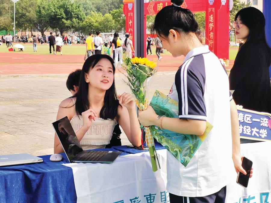 高校學(xué)長學(xué)姐耐心答疑解惑。 惠州日報記者侯婉怡 李燕文 通訊員楊舒婷 攝