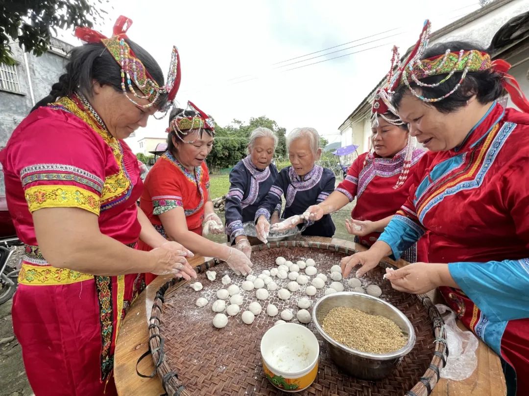 畬族群眾正在做手捏糍粑。