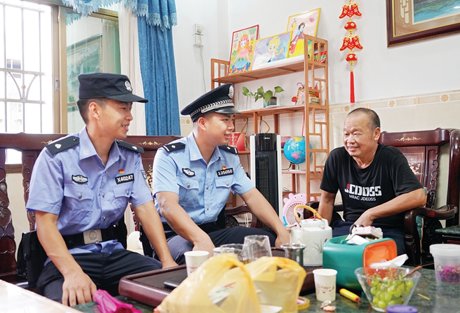 “走訪不光是聊家常,還要為村民解難題。”張宇帆說(shuō),蝦塱村轄區(qū)有不少留守老人,對(duì)于如何更新戶口身份證、辦理居住證、辦理無(wú)犯罪證明等十分陌生。他便借助走訪契機(jī),耐心地為村民解答、手把手教學(xué)。在走訪中,張宇帆發(fā)現(xiàn)村內(nèi)監(jiān)控存在死角,于是便立馬向上級(jí)部門反映,“監(jiān)控很重要,不僅在案件發(fā)生時(shí)提供線索、證據(jù),最主要是平時(shí)能起到威懾作用。”如今,蝦塱村監(jiān)控死角已被覆蓋,村民平安更有保障。