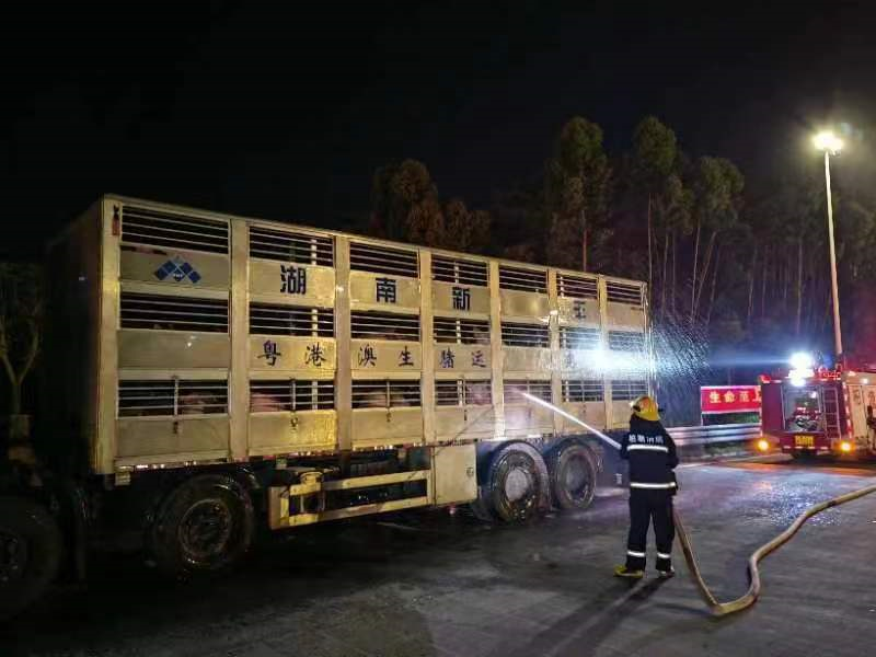 5月29日晚,惠州博羅縣楊僑消防救援站接到一起高速救助警情,武深高速柏塘平安段一輛運(yùn)載生豬的貨車發(fā)生故障停靠在收費(fèi)站出口邊上。因近日天氣高溫濕熱,車上的“二師兄”隨時(shí)有生命危險(xiǎn)。情急之下,司機(jī)趕緊撥打了119報(bào)警電話,向消防救援人員求助。