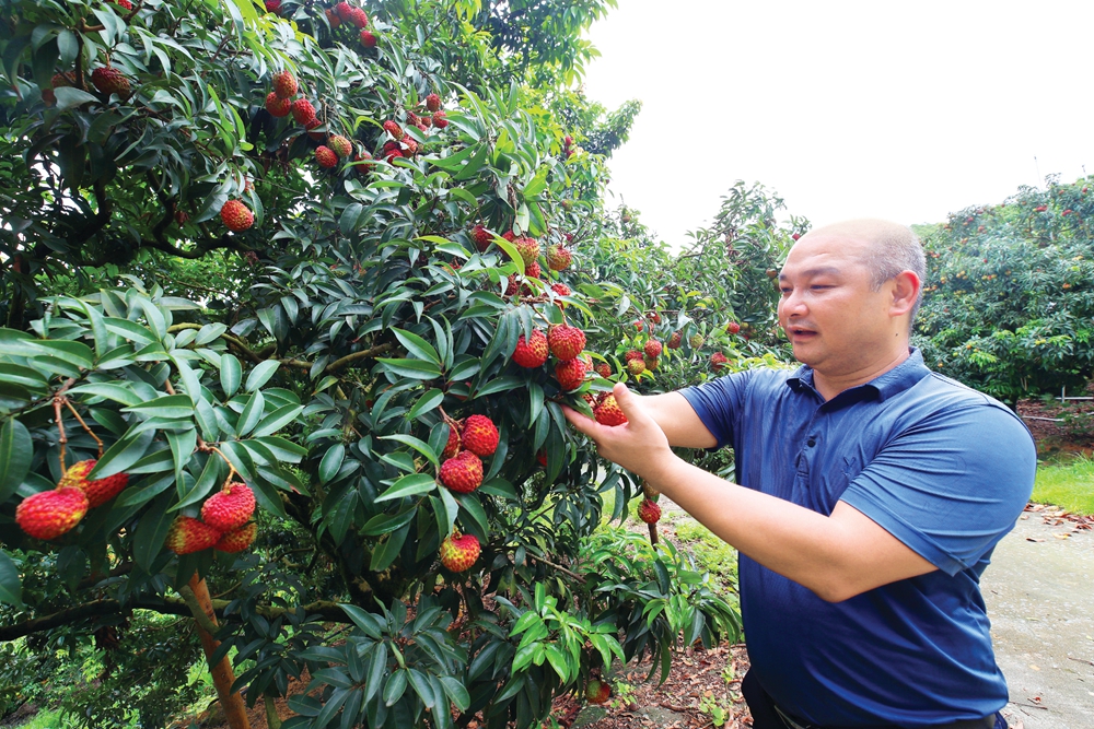 果農(nóng)查看荔枝生長(zhǎng)情況。 惠州日?qǐng)?bào)記者鐘暢新 攝