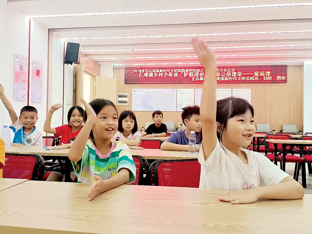 孩子們在公益課堂上學(xué)習(xí)童謠。 惠州日報(bào)記者李燕文 特約通訊員彭冬婷 通訊員陳艷婷 攝