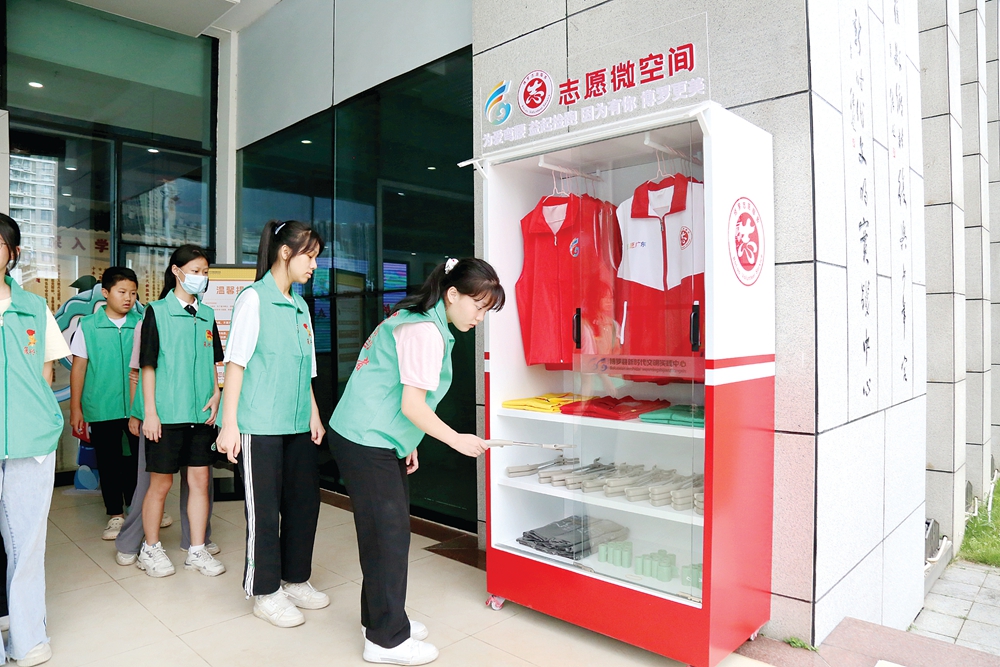 志愿者在“志愿微空間”領(lǐng)取撿跑工具。 惠州日?qǐng)?bào)記者盧泓宇 通訊員徐俊杰 攝