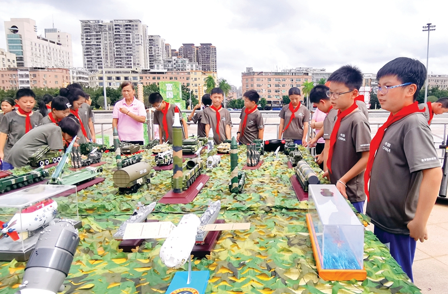 每年9月的第三個星期六是全民國防教育日。9月15日,博羅縣在縣城文化廣場舉行“踔厲奮發(fā)強國防 勇毅前行向復興”第23個全民國防教育日活動,通過國防知識展覽長廊、軍事項目互動體驗、軍事隊列動作訓練等形式,普及國防教育知識,增強群眾國防觀念。這是學生在博羅縣城文化廣場觀看武器模型。