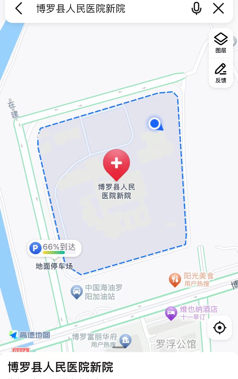 在地圖應用輸入“博羅縣人民醫(yī)院新院”即可導航到達。