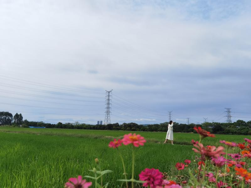 在機(jī)耕路兩旁,各色花兒綻放,迎風(fēng)搖曳,不時還有蜜蜂和蝴蝶在花兒周圍追逐,為這幅美麗的自然畫卷增添了絲絲靈氣。