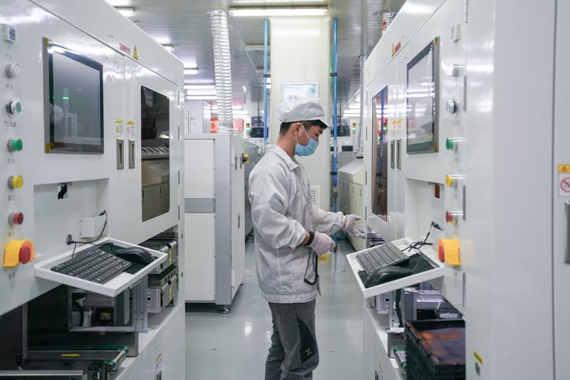 欣旺達惠州新能源產(chǎn)業(yè)基地的工人正在產(chǎn)線上忙碌著調(diào)試設備。