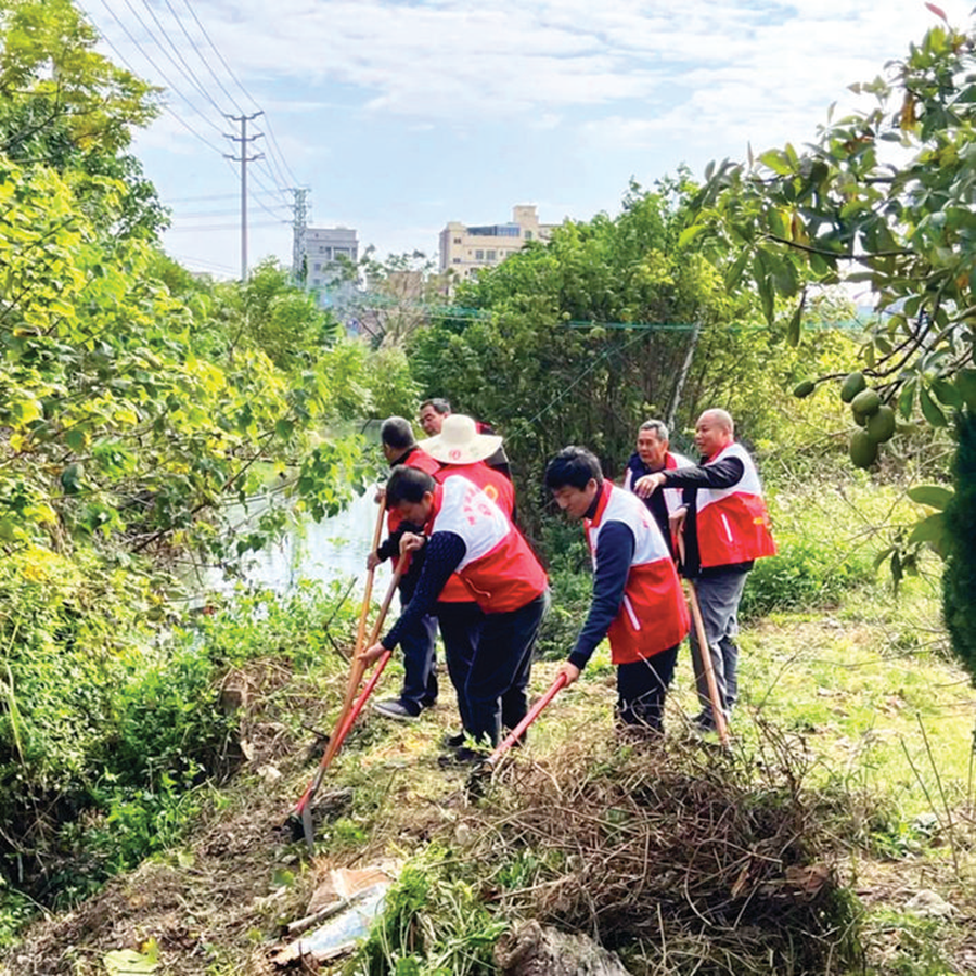齊心協(xié)力清理河岸邊雜草。 惠州日?qǐng)?bào)記者李燕文 通訊員石灣宣 攝