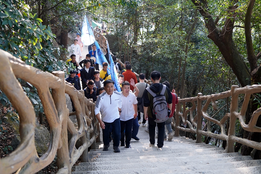 登山不到羅浮巔,舉足萬里空徒然。活動(dòng)全體參與人員以方隊(duì)為單位,邁著矯健的步伐沿著登山線路從索道上站臺(tái)、鷹嘴巖、登山門、朝真石、燕巖頂、云峰巖、分水坳直至飛云頂,在迷人景色中登山祈福健身。