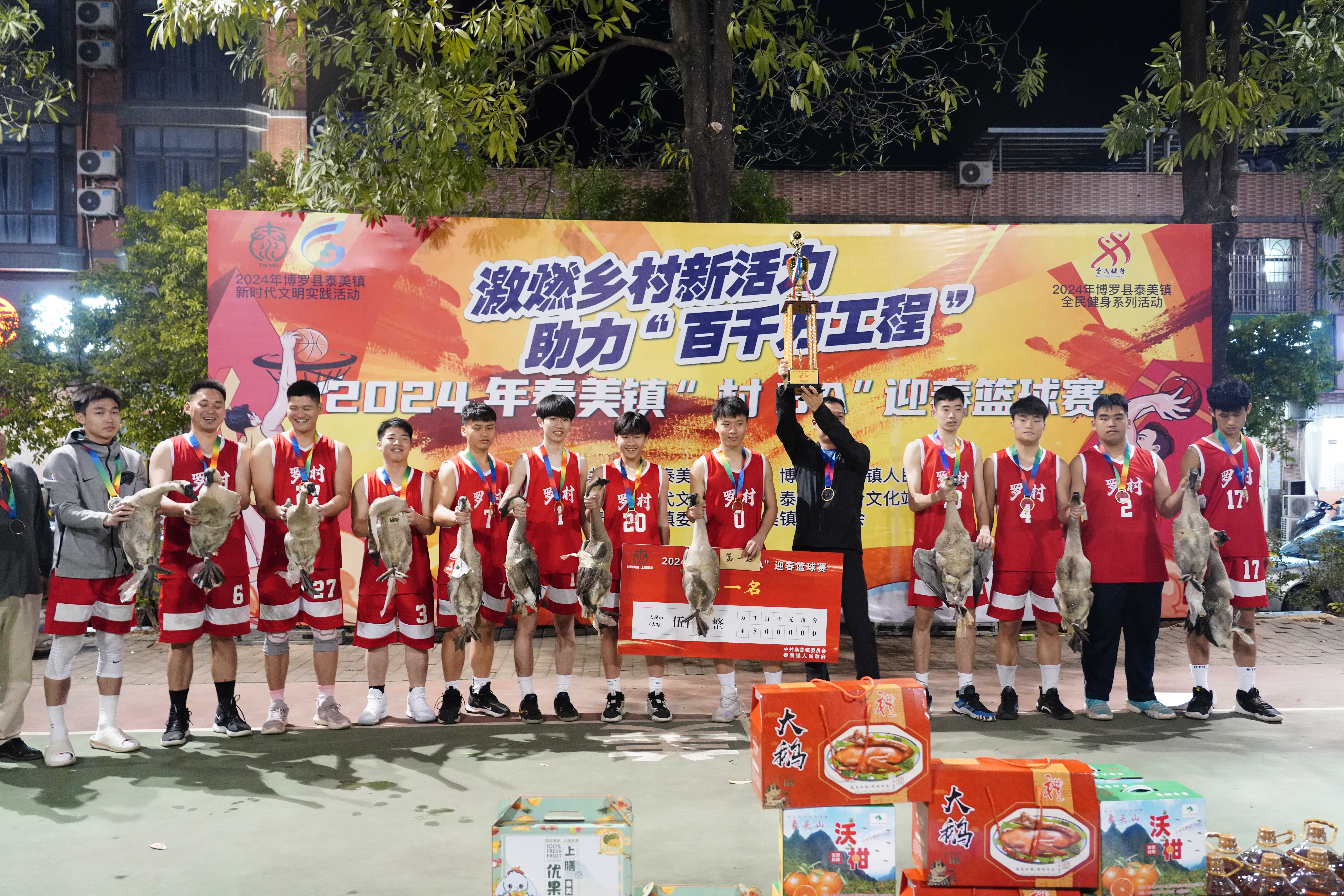 今年除了獎(jiǎng)金、獎(jiǎng)杯、獎(jiǎng)牌的獎(jiǎng)勵(lì),獲勝隊(duì)伍還獲得產(chǎn)自泰美鎮(zhèn)農(nóng)村各具特色的農(nóng)特產(chǎn)品、手信獎(jiǎng)品,如盤沱村的反季節(jié)小龍蝦、興水圍村的沃柑、沐村村的貝貝南瓜……每支隊(duì)伍滿載而歸,讓泰美鎮(zhèn)“村BA”迎春籃球賽充滿年味和農(nóng)味。