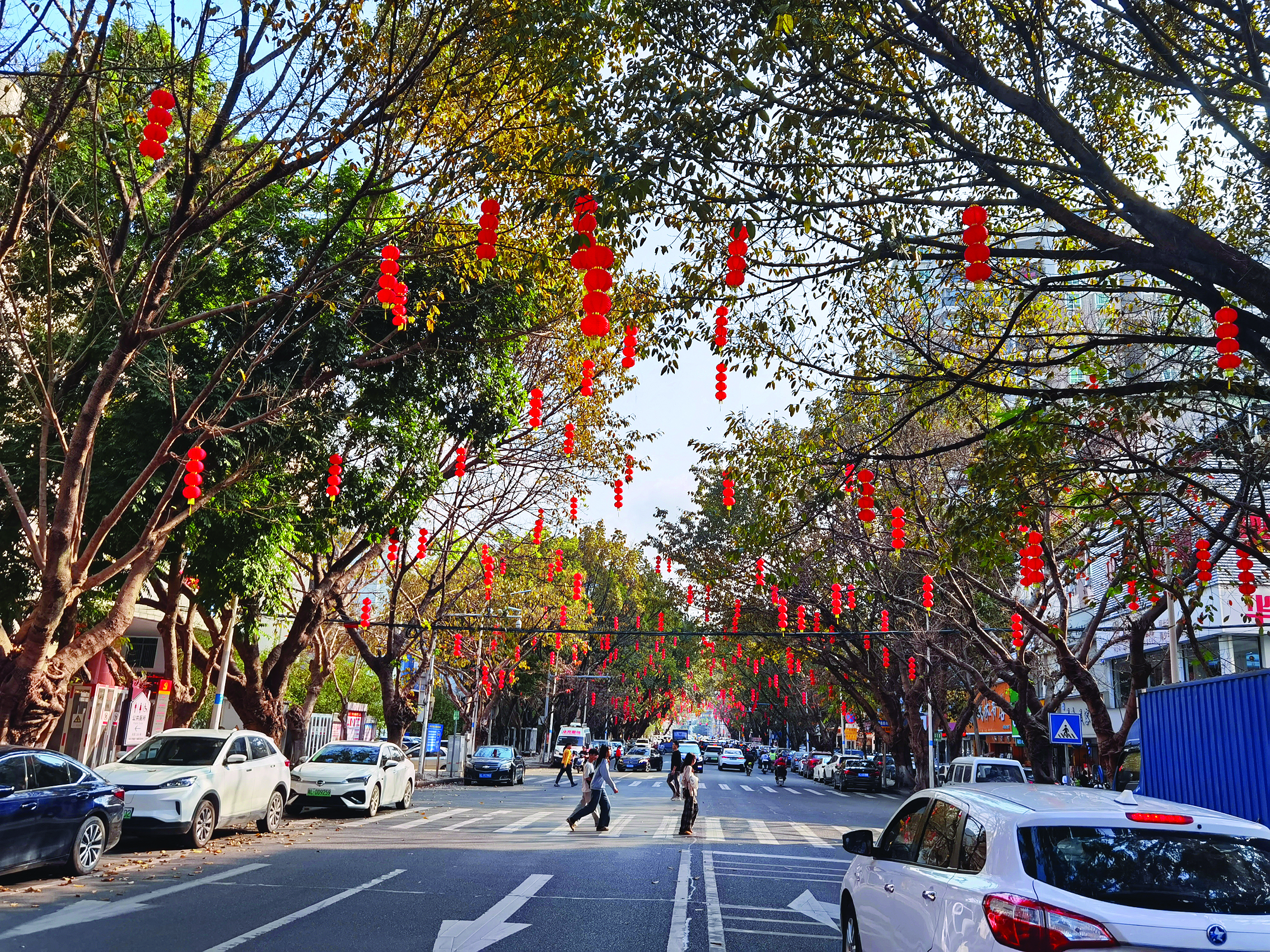 走在博羅縣城,只見博惠路、北門路、商業(yè)中街等主要路段的綠化樹上都懸掛了紅燈籠,亮眼的中國紅成為博羅縣城最靚麗的風景。縣城東山森林公園、縣城文化廣場、人民公園等地除了懸掛紅燈籠外,還擺放了各類時花,縣城的主要路口結(jié)合綠美生態(tài)建設(shè),新植下了草皮、擺放了鮮花,將新春的氣氛烘托得更加濃郁。