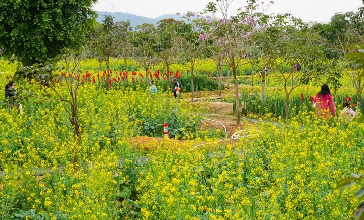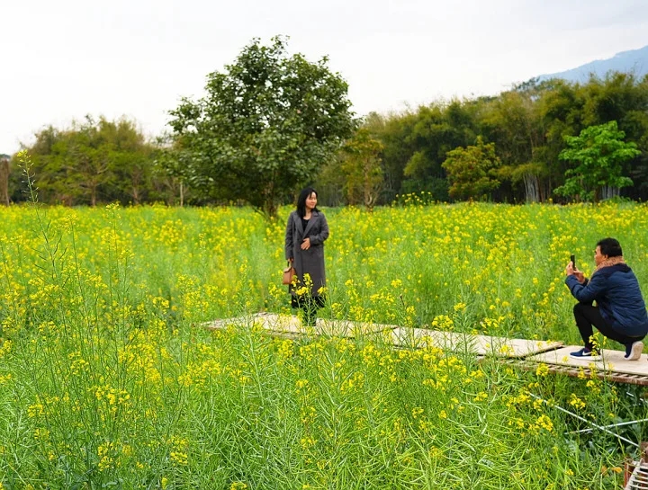春暖花開好時節(jié),郊游踏青正當(dāng)時。羅浮山下,博羅縣長寧鎮(zhèn)下浪村浮生六季生態(tài)園里,有100畝金黃燦爛的油菜花正在盛開,油菜花海吸引眾多游客慕名而來。