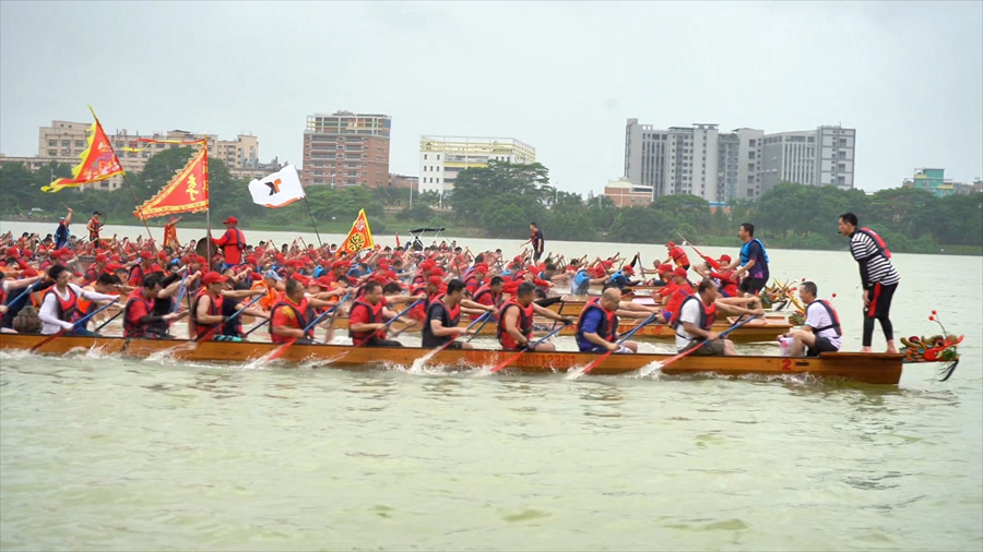 一艘艘龍舟如箭離弦,在東江上劈波斬浪。
