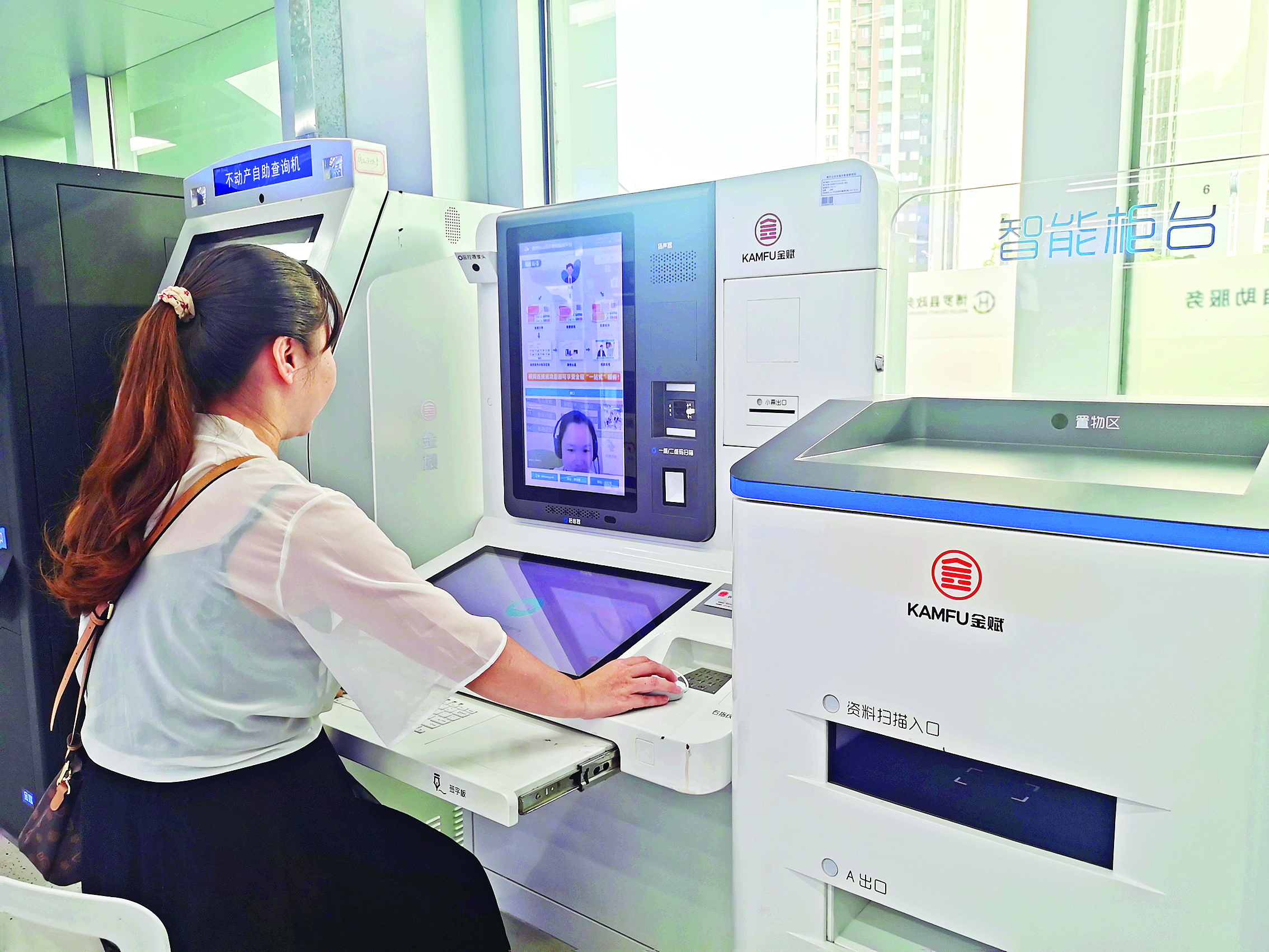 市民通過智能柜臺與工作人員遠(yuǎn)程視頻辦理業(yè)務(wù)。