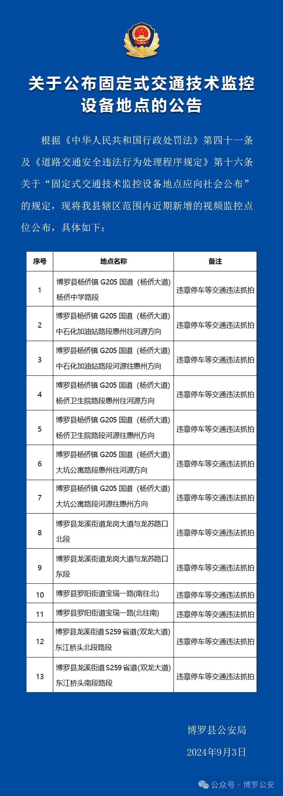 《關(guān)于公布固定式交通技術(shù)監(jiān)控設(shè)備地點的公告》