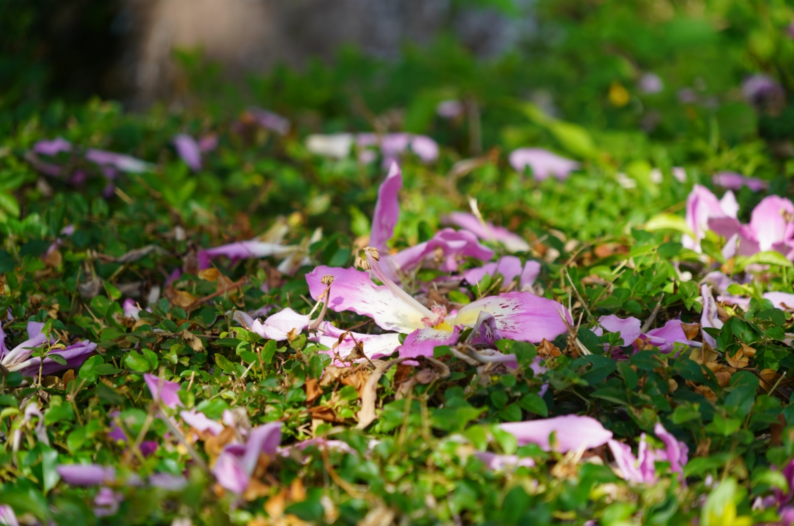 美麗異木棉的花色是淡粉色,其樹冠傘形,花朵大而艷盛花期滿樹姹紫,花期可持續(xù)數(shù)月,是優(yōu)良的觀花喬木。美麗異木棉在秋冬開的十分熱烈,滿樹粉紅色的花朵,燦若云霞,異常美麗,陽光下怒放的美麗異木棉,斑駁光影,流離婆娑,花枝搖曳,十分好看。偶爾墜落草叢,拾起一朵放在手心,淡淡花香沉醉其中。