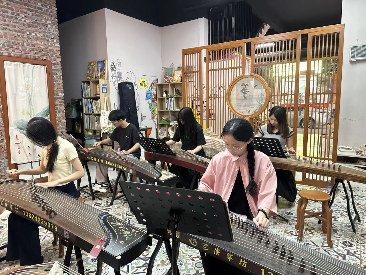 在掌握青年的需求后,團湖鎮(zhèn)鎮(zhèn)委第一時間著手設計課程內容。立足青年“學藝、交友、減壓”實際,聚焦“文化藝術、體育運動、素質提升”等類目,考慮青年時間、距離等需求,分批開展青年夜校特色課程。截至目前,已開設了古箏、架子鼓、吉他教學、國畫、瑜伽課程,受到了廣大青年的深度追捧,其中架子鼓、吉他教學等“潮味兒”十足的課程更是成為“爆款”。