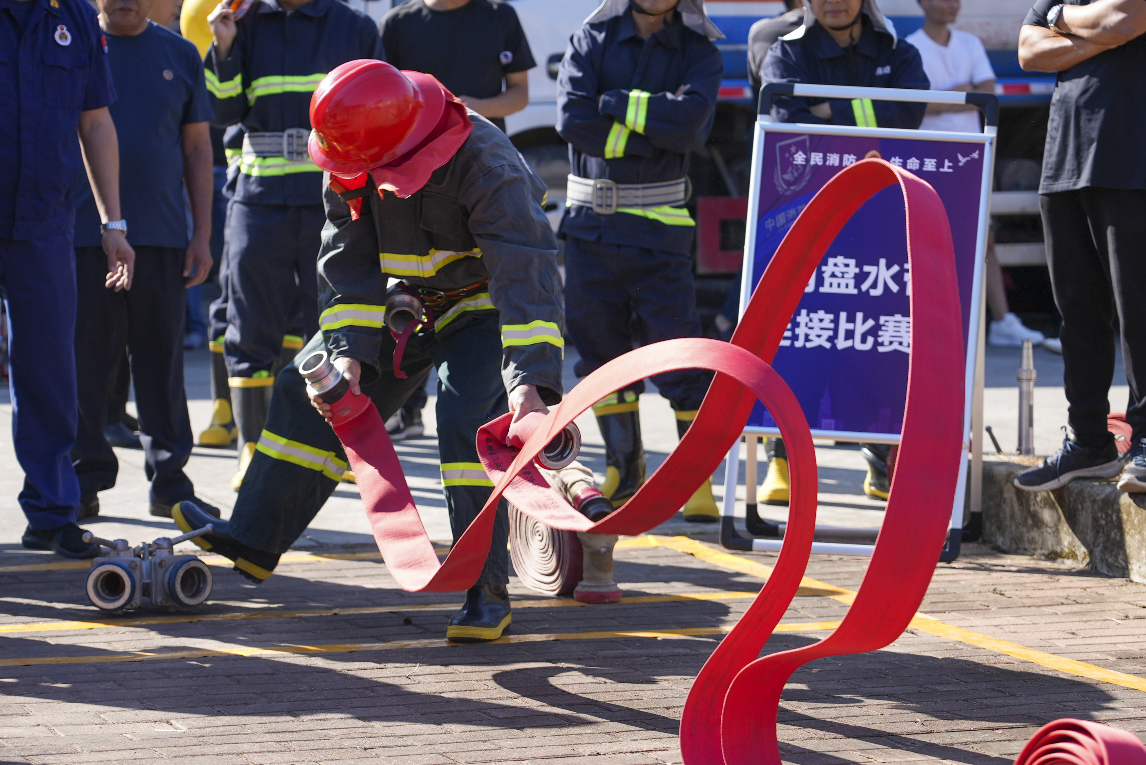 當(dāng)天,全鎮(zhèn)14支村(居)消防代表隊進(jìn)行了激烈的消防技能比武。甩帶、連接、奔跑……在兩盤水帶連接比武現(xiàn)場,只見各村(社區(qū))的消防隊員個個精神抖擻。裁判員一聲令下,大家爭分奪秒,以最快速度完成兩盤水帶連接的各項環(huán)節(jié),然后沖向終點(diǎn)。在比賽過程中,參賽隊伍團(tuán)結(jié)拼搏、奮勇爭先,展示了過硬的技能、頑強(qiáng)的作風(fēng)、良好的精神風(fēng)貌,出色地完成了各項比賽項目。據(jù)悉,此次消防比武共設(shè)有兩盤水帶連接、90米滅火操、原地穿消防服等三個比賽項目,每個項目以完成度和完成速度來綜合評比。經(jīng)過激烈角逐,最終決出每個單項的前四名以及團(tuán)體獎項。