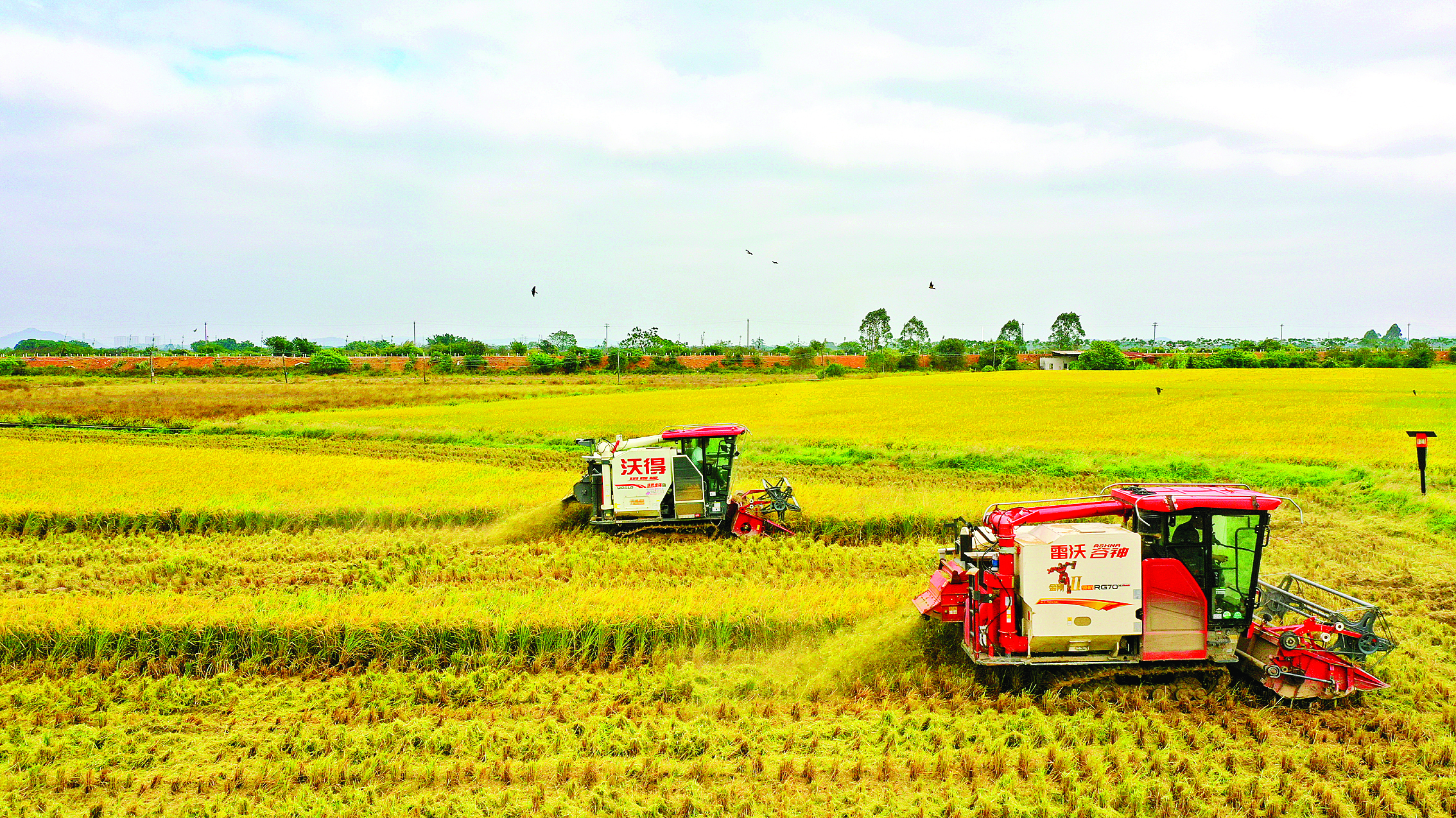 惠州日?qǐng)?bào)訊 (記者朱麗婷)稻浪翻滾,滿目金黃。正值晚稻成熟收割期,在博羅縣園洲鎮(zhèn)水口村呈現(xiàn)一派“稻穗黃,機(jī)收忙”的喜人景象。園洲鎮(zhèn)充分發(fā)揮農(nóng)業(yè)龍頭企業(yè)帶動(dòng)作用,通過“企業(yè)+合作社+農(nóng)戶”的模式,推廣優(yōu)質(zhì)高產(chǎn)品種和農(nóng)業(yè)機(jī)械等適用技術(shù),進(jìn)一步推動(dòng)農(nóng)業(yè)高質(zhì)量發(fā)展。