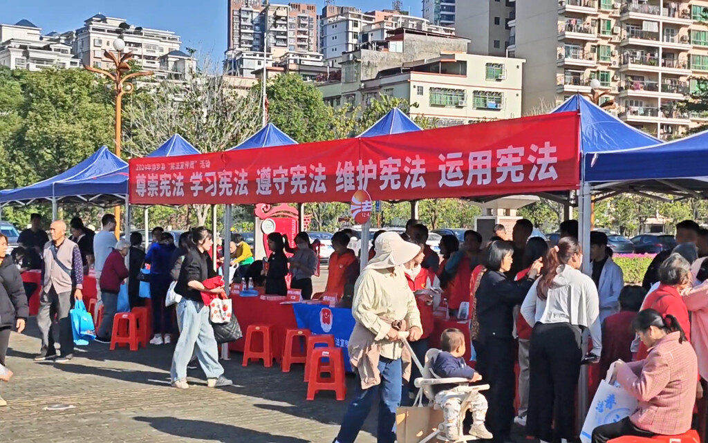 “記住憲法在你身旁,藍天下憲法為我們護航……”12月3日,一曲悠揚的《憲法伴我們成長》從博羅縣東山森林公園傳來,正式拉開了2024年博羅縣“憲法宣傳周”的帷幕。當天,博羅縣司法局等30多個普法成員單位在此集中“出攤”,通過派發(fā)宣傳單張、面對面釋法析理、開展普法文化作品展等方式,廣泛開展普法主題宣傳,營造尊崇憲法、學習憲法、遵守憲法、維護憲法、運用憲法的濃厚氛圍。