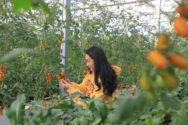 “色彩很美,口感很好。”游人小唐從網(wǎng)上看到金妃小番茄可以采摘的信息,就和朋友驅(qū)車(chē)過(guò)來(lái)打卡。除了品嘗這些美味的小番茄外,她還讓朋友幫她拍了許多美照。她說(shuō):“親近大自然,體驗(yàn)采摘,還留下美美的圖片,很開(kāi)心。”