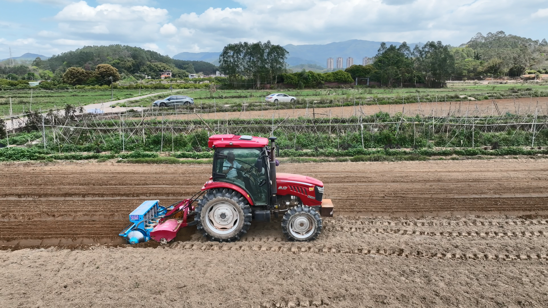 在博羅縣羅陽街道浪頭村的一塊農(nóng)田上,伴隨著陣陣機械轟鳴聲,一臺花生播種機在農(nóng)田里來回“奔跑”,顆粒飽滿的花生種子簌簌落下。播種機“修”出了一條條整齊的田壟,每條壟上分別有5行小溝,那是花生種子播種的路徑。