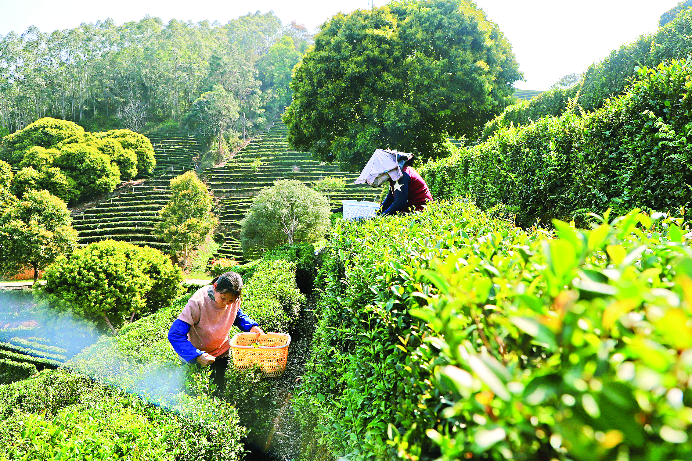 湖鎮(zhèn)鎮(zhèn)石芽壩片區(qū)茶農(nóng)在采茶。
