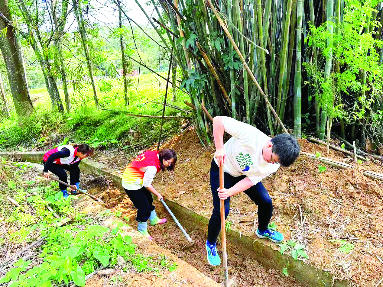 志愿者和社區(qū)工作人員在清淤。惠州日報(bào)記者李燕文 通訊員湖鎮(zhèn)宣 攝
