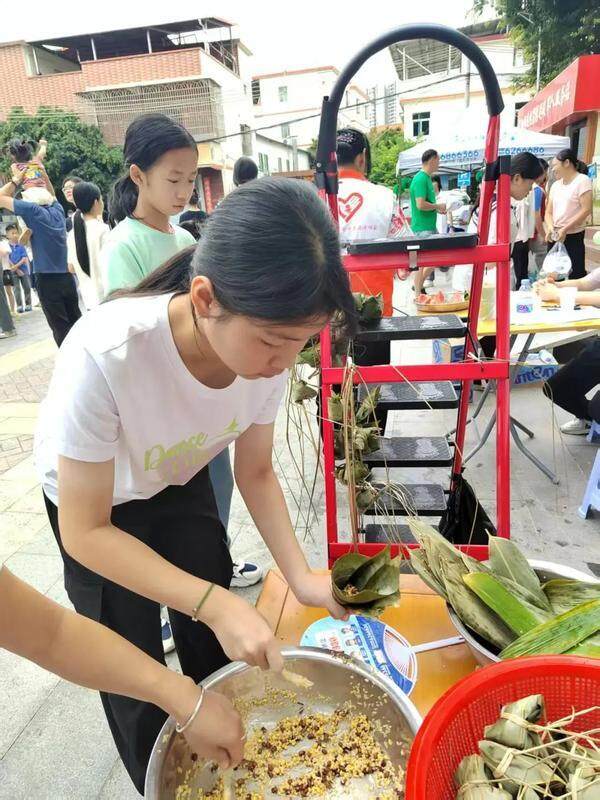 正值端午節(jié)之際,活動特別設(shè)置了包粽子體驗環(huán)節(jié)。志愿者們現(xiàn)場示范教學(xué),孩子們在家長的指導(dǎo)下學(xué)習(xí)包粽子,雖然包出的粽子形態(tài)各異,但每一個都飽含著對傳統(tǒng)文化的好奇與熱愛。當(dāng)一片片翠綠的粽葉包裹著糯米和餡料,變成小巧可愛的粽子時,孩子們臉上綻放出自豪的笑容。包粽子體驗,不僅鍛煉了孩子們的動手能力,還幫助他們深入了解了端午節(jié)的傳統(tǒng)文化,增強(qiáng)了親子互動與文化認(rèn)同感。現(xiàn)場,主辦方還為孩子們準(zhǔn)備了幸運抽獎環(huán)節(jié),用別樣方式為孩子們送上節(jié)日禮物。