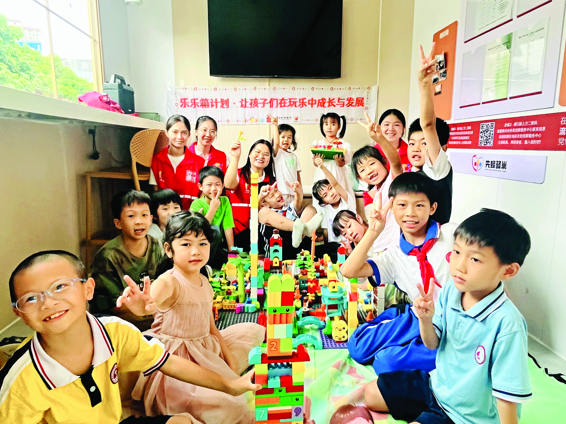 方向公益協(xié)會組織青少年兒童在先“蜂”驛巢開展積木拼搭公益課活動。