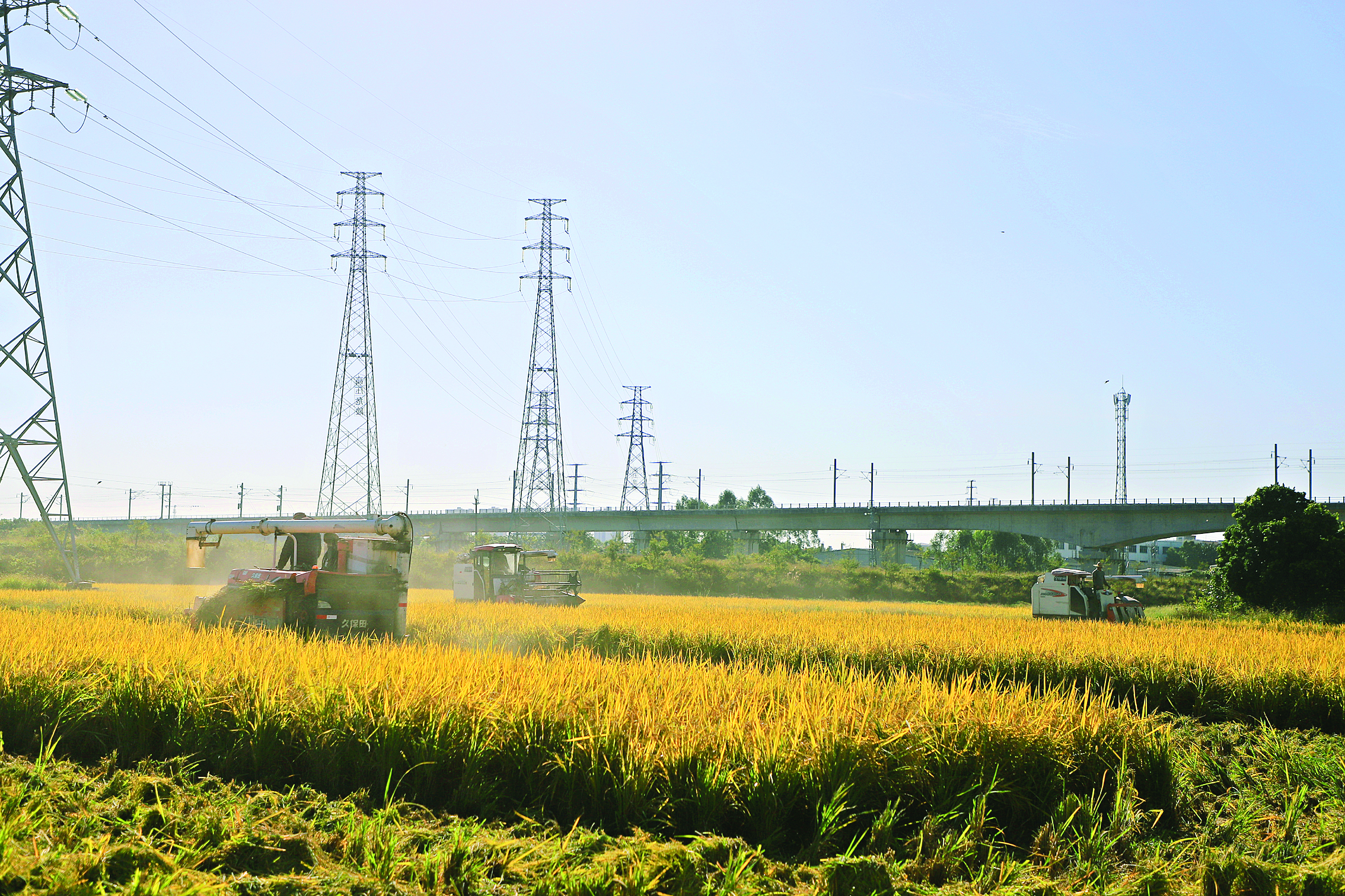 博羅不僅守住田的數(shù)量,還讓農(nóng)田的質(zhì)量更好。石灣鎮(zhèn)黃西村現(xiàn)有耕地提質(zhì)改造項(xiàng)目入選廣東第二屆墾造水田十大典型案例。8月初,在博羅縣石灣鎮(zhèn)伴永康優(yōu)質(zhì)絲苗米種植基地內(nèi),收割機(jī)在金黃的稻浪中穿梭,金黃的稻谷通過輸送管直接裝入運(yùn)糧車……今年,該基地種植的“南晶香占”絲苗米,畝產(chǎn)約440公斤。