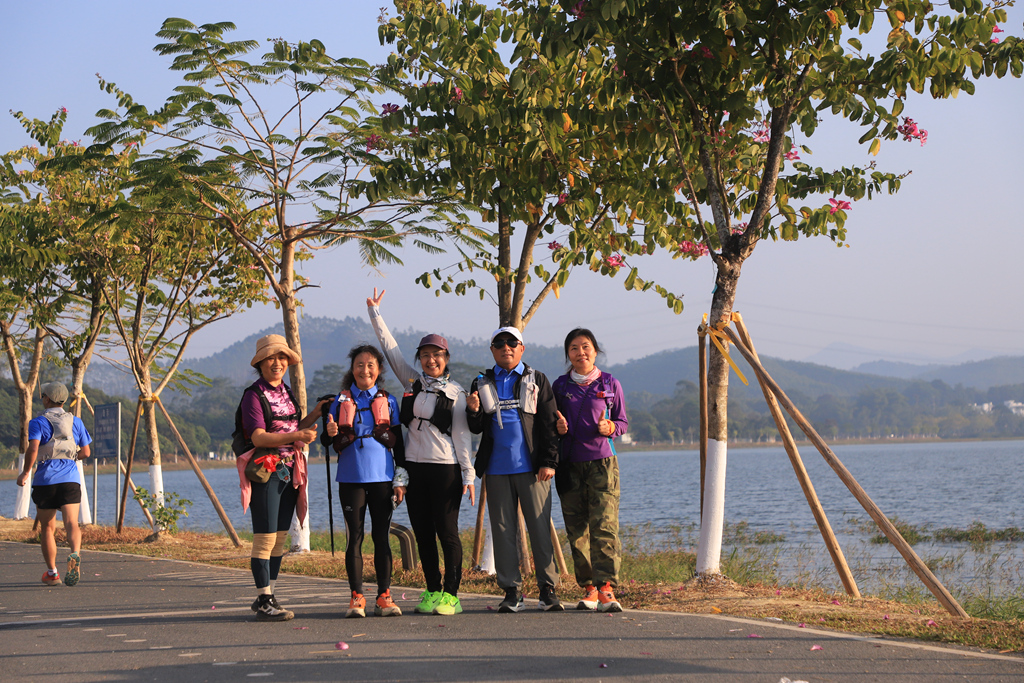 此次徒步線路全程57公里,其中約36公里綠道,18公里鄉(xiāng)道和村道,3公里機(jī)耕路,途經(jīng)長寧鎮(zhèn)、橫河鎮(zhèn)、湖鎮(zhèn)鎮(zhèn),再回到羅浮山風(fēng)景名勝區(qū)旅游文化廣場。沿途山水相依,綠美相隨,美景填滿了大家的雙眼。作為途中的“重頭戲”,“小洱海”再次出圈,不管是初來乍到,還是二次相遇,或是多次光臨,驢友們都不吝嗇贊美之詞。據(jù)悉,此次徒步活動(dòng)吸引了來自惠州、廣州、深圳、東莞、佛山、珠海、中山、上海、香港、澳門等全國各地驢友前來參與。來自深圳的谷女士帶著丈夫、兒子一家三口前來參加活動(dòng)。在“小洱海”,他們多次放慢腳步,拍照打卡。她興奮地說:“手機(jī)的內(nèi)存空間,都快要報(bào)警了。”