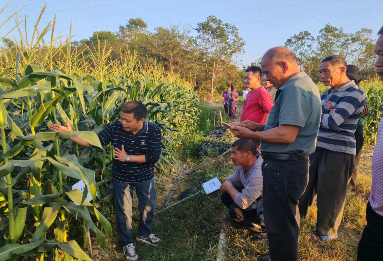 種植戶在田間學(xué)習(xí)鮮食玉米優(yōu)新品種高效栽培技術(shù)。 惠州日?qǐng)?bào)記者王開堯 盧泓宇 攝