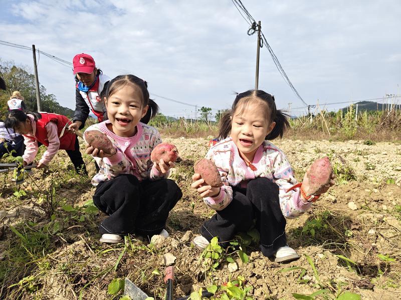 孩子們參加挖紅薯勞作實(shí)踐,學(xué)習(xí)“愛糧節(jié)糧”。 惠州日?qǐng)?bào)記者李燕文 通訊員劉鳳英 攝
