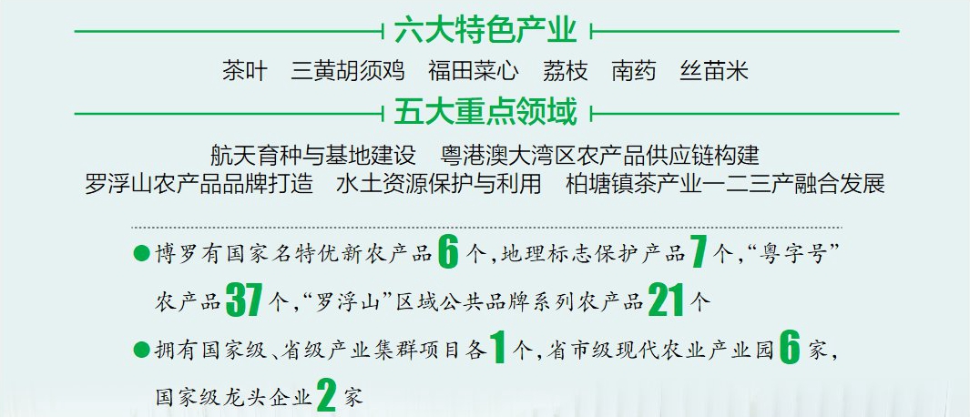 省農(nóng)科院和博羅縣將圍繞茶葉、三黃胡須雞、福田菜心、荔枝、南藥、絲苗米六大特色產(chǎn)業(yè)技術提升以及航天育種與基地建設、粵港澳大灣區(qū)農(nóng)產(chǎn)品供應鏈構建、羅浮山農(nóng)產(chǎn)品品牌打造、水土資源保護與利用、柏塘鎮(zhèn)茶產(chǎn)業(yè)一二三產(chǎn)融合發(fā)展五大重點領域,系統(tǒng)部署科技支撐與服務內容。