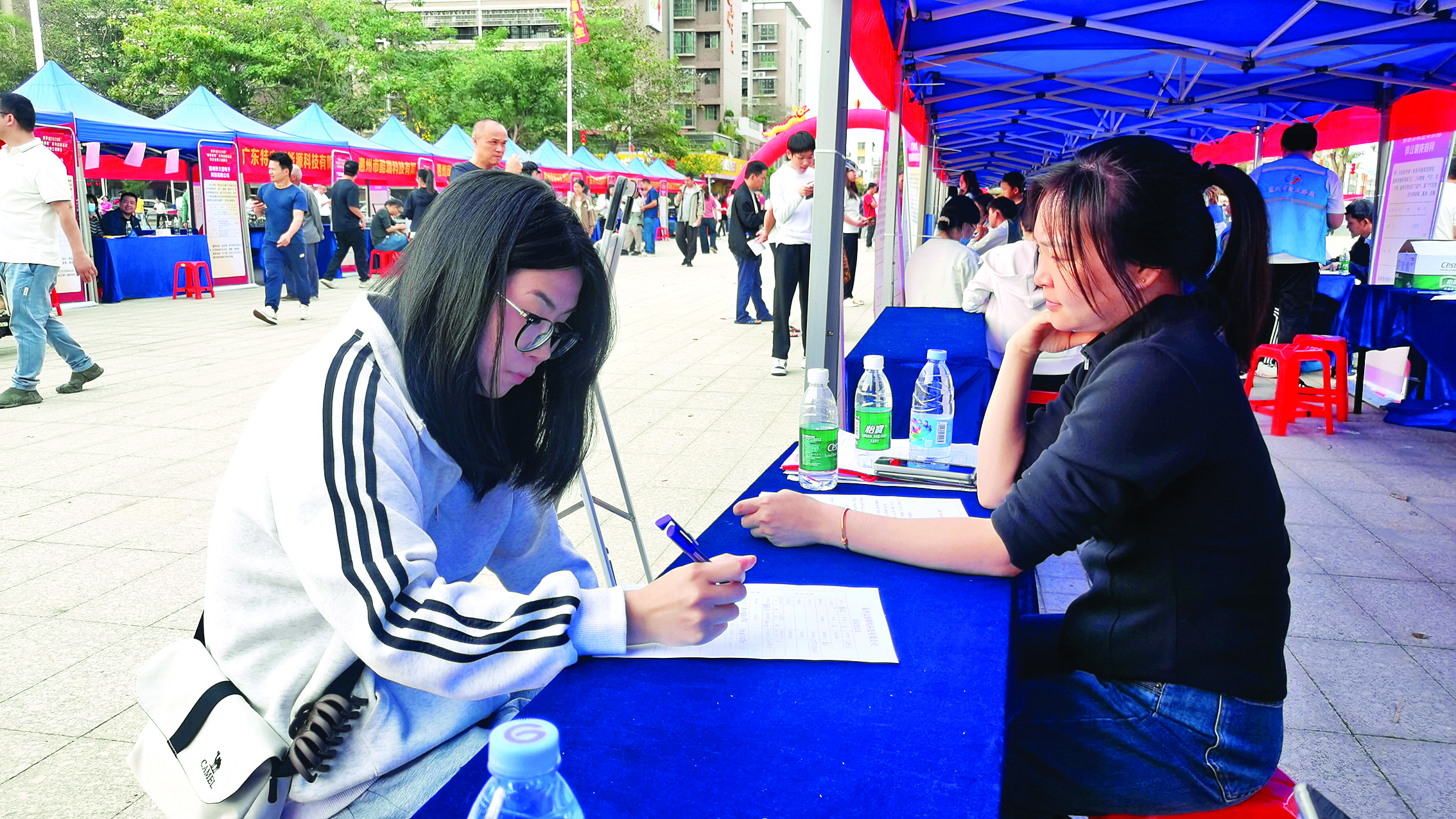 企業(yè)招聘熱情高漲,既有新投產(chǎn)企業(yè)的迫切需求,也有扎根多年企業(yè)的人才補充計劃。“我們的新工廠前幾日剛投產(chǎn),此次帶來150多個崗位,目前已完成一半招聘量。”惠州市志譽科技有限公司總經(jīng)理宋亞輝介紹,該企業(yè)主營電子元器件以及散熱風扇的生產(chǎn)、研發(fā)、銷售,因擴大生產(chǎn)在楊僑新建工廠,目前企業(yè)訂單充足,期待更多人才加入。“感謝政府提供平臺,讓我們可以就近解決用工需求,也可以讓更多周邊群眾就近工作。”超然新材料科技(廣東)有限公司人事助理鄧文婷表示,該企業(yè)發(fā)展勢頭良好,此次計劃招聘研發(fā)助理、制袋工等4個職位填補空缺,現(xiàn)場已收到近10份簡歷。