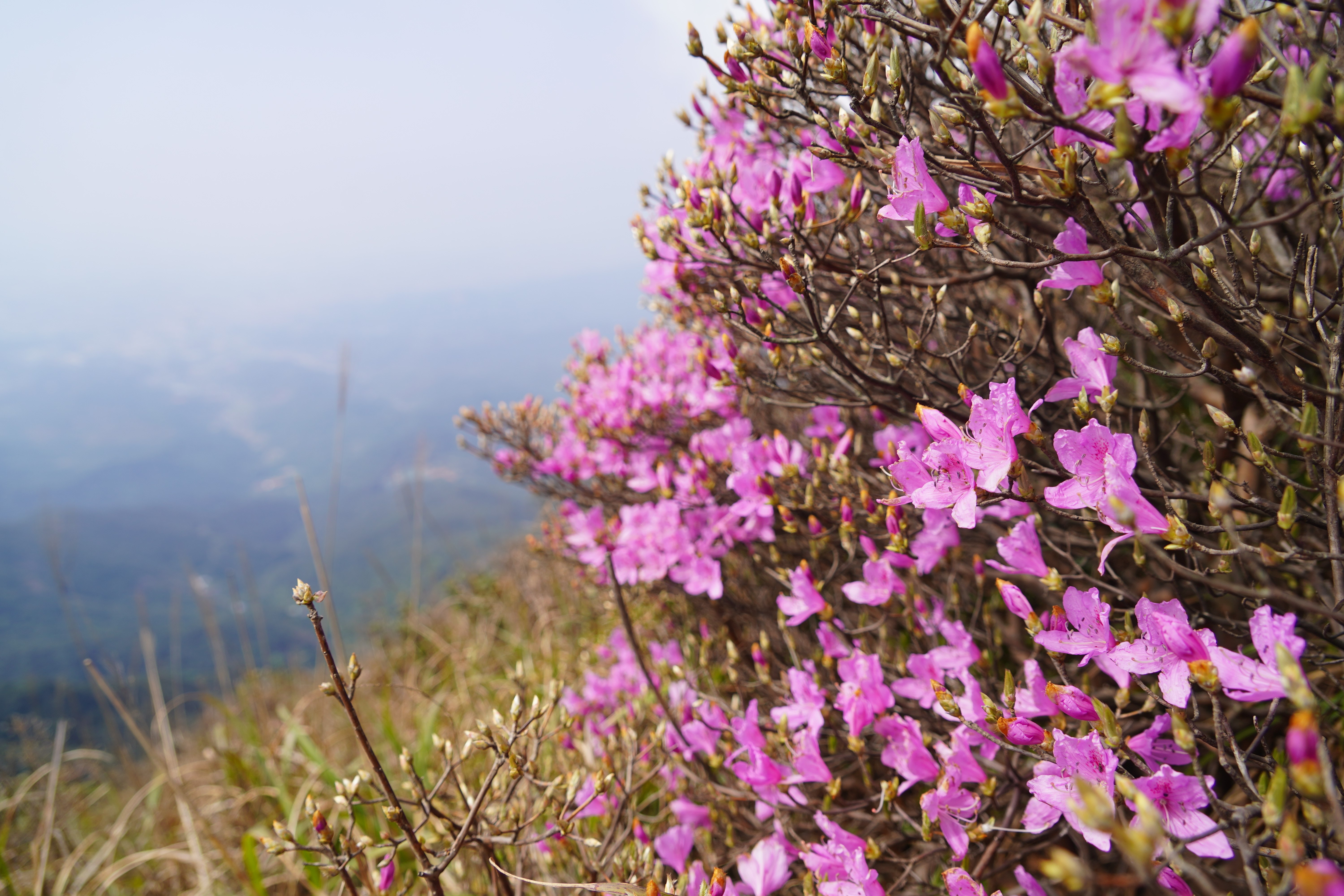 陽春三月,風(fēng)暖花香。此刻的羅浮山,迎來一年中最富詩意的花語時光。從索道上站臺蜿蜒至分水坳的山道兩側(cè),野生毛棉杜鵑、高山杜鵑次第綻放,紅似霞、粉如黛、紫若煙,一簇簇、一叢叢,如云似霧、如夢似幻,成為今春最出片的自然盛景。