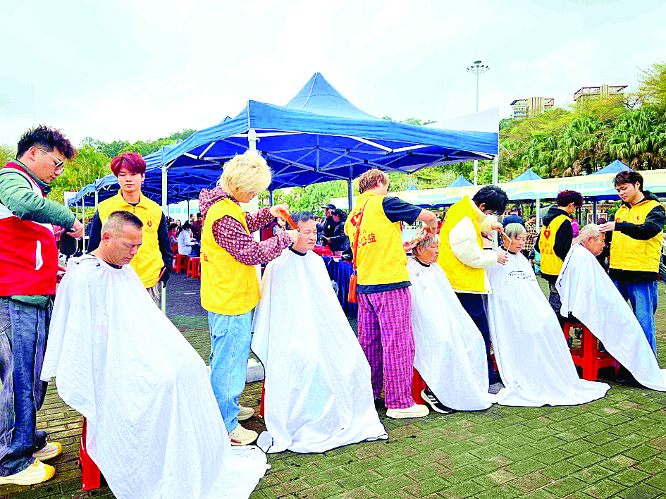義剪志愿者為市民剪發(fā)。惠州日報記者盧泓宇 攝