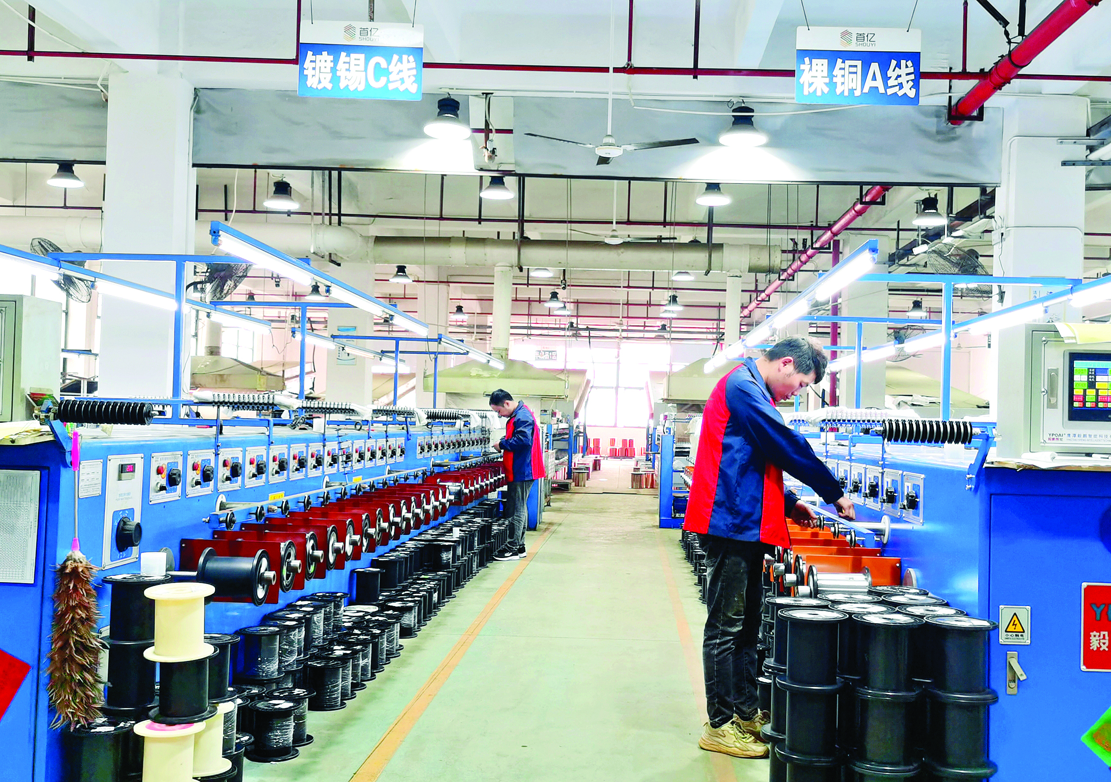 作為一家集銅線加工、膠料供應(yīng)、電線電纜研發(fā)生產(chǎn)銷售于一體的綜合性企業(yè),首億電線電纜專注于高性能特種線纜解決方案,產(chǎn)品廣泛應(yīng)用于消費電子、工業(yè)自動化、汽車制造、醫(yī)療設(shè)備及新能源等領(lǐng)域。今年以來,企業(yè)新啟用智能化高速拉絲退火生產(chǎn)線與智能化包裝機等生產(chǎn)設(shè)備,生產(chǎn)效率大幅提升,為搶抓市場訂單提供了堅實保障。