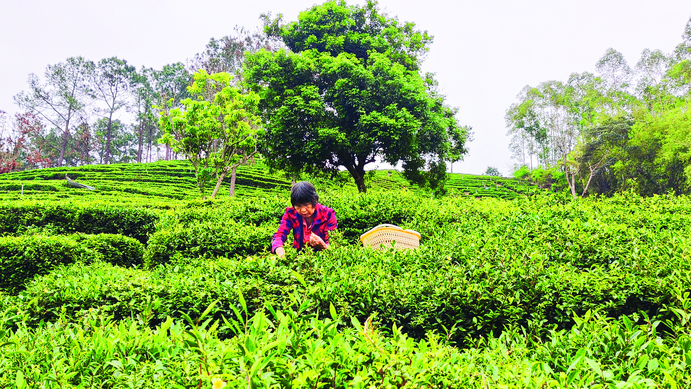 煙雨朦朧的清明,茶山被洗得清亮,一片片嫩芽頂著晶瑩的雨珠,在晨光中泛著溫潤的光澤。清明前后是一年茶葉生產的重要季節(jié)。對于清明茶的采摘,茶農格外重視。今年60余歲的曾桂錦,與茶相伴已有半個世紀,10多歲便跟著長輩種茶、炒茶。談及茶葉,曾桂錦的眼中滿是熱忱:“這幾天天不亮就上山,看看茶芽的長勢,安排好采茶的活計,半點不敢馬虎。”中午等大家把茶青采回來,他便開始炒茶,一炒就是大半天,有時要忙到晚上十一二點。